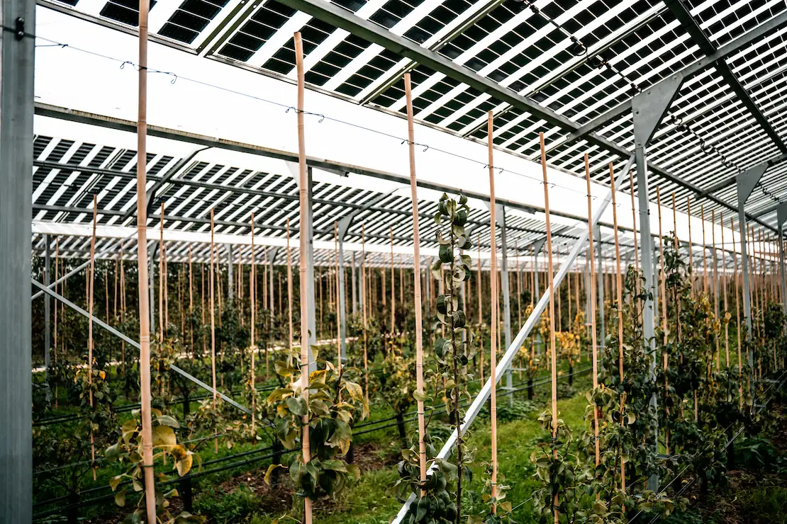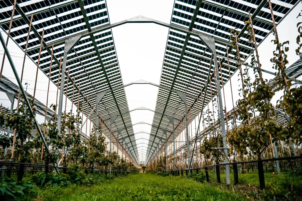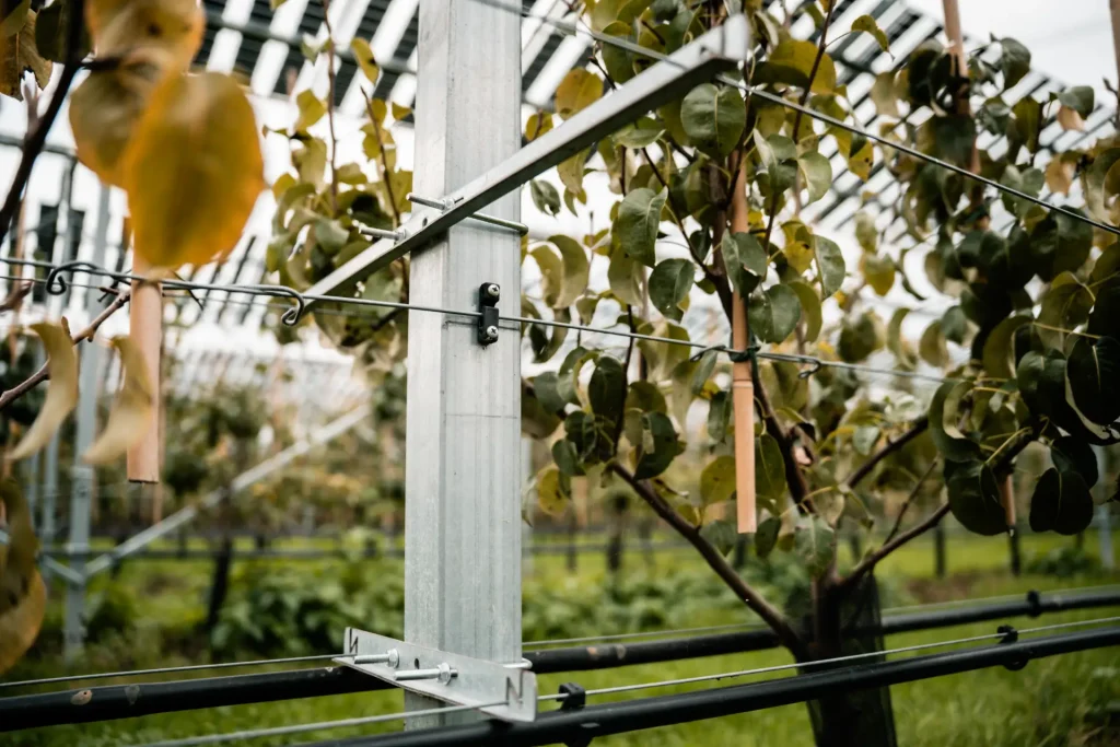With its smart east-west configuration, this system maximizes energy yield while simultaneously providing shade and protection for the pear trees. This fusion of sustainable energy generation and high-quality fruit cultivation sets a new standard for agricultural technology.
